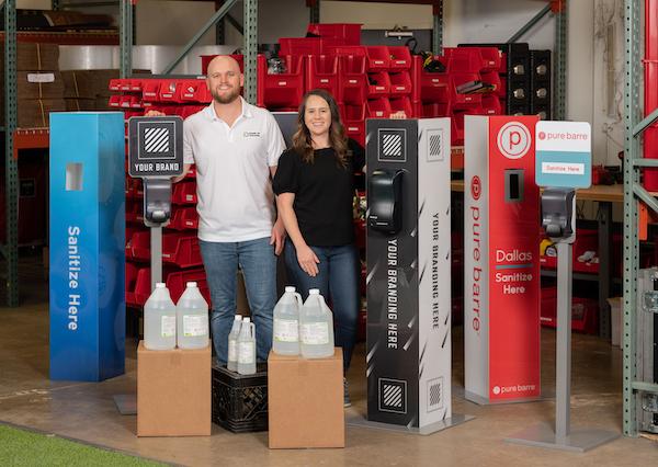 DALLAS - May 7, 2020 - Dallas-based entrepreneurs, Alex and Kelsey Carroll, went from building tailgate games for some of the world’s biggest brands, like Pepsi, General Mills, and the Dallas Cowboys, to producing customizable hand sanitizer stations after their event-based business was hit hard by the Coronavirus shutdown.